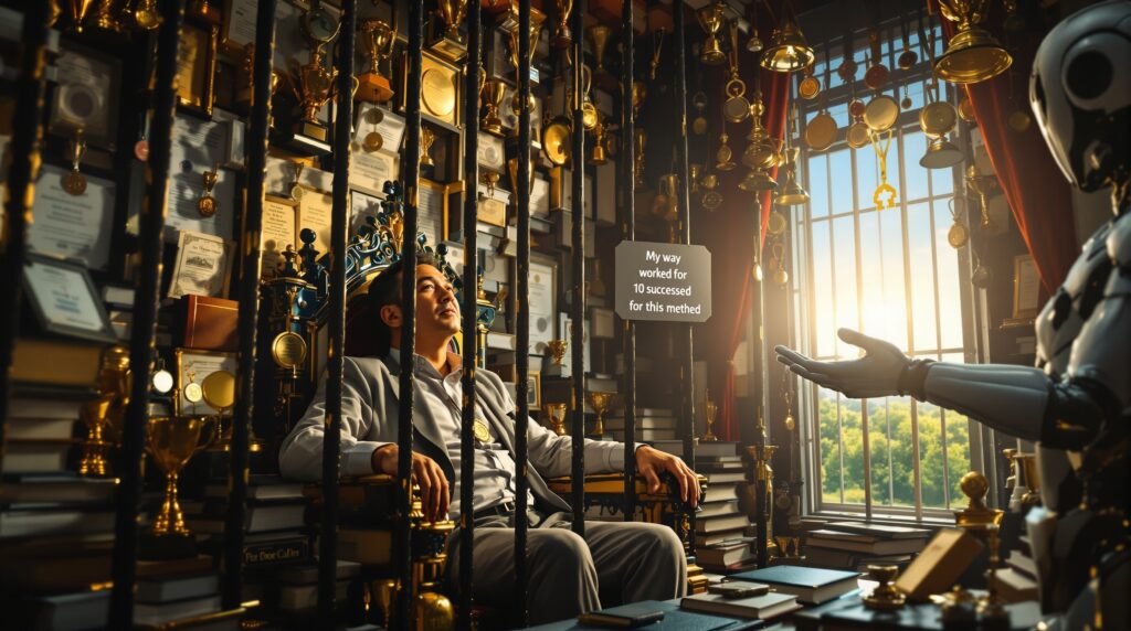 そうやって、AIの提案を「敵」とみなし、自分自身の「古いやり方」という「牢獄」に、さらに強く閉じこもってしまうのです。