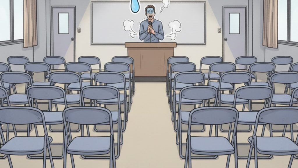 そして、これが最大の「罠」です。 もし、勇気を出して「仲間募集!」のチラシを貼り、AIに「最初の一歩」だと教わった「第一回・説明会」を開催したとして。 当日、会場の公民館に、誰も来なかったら?